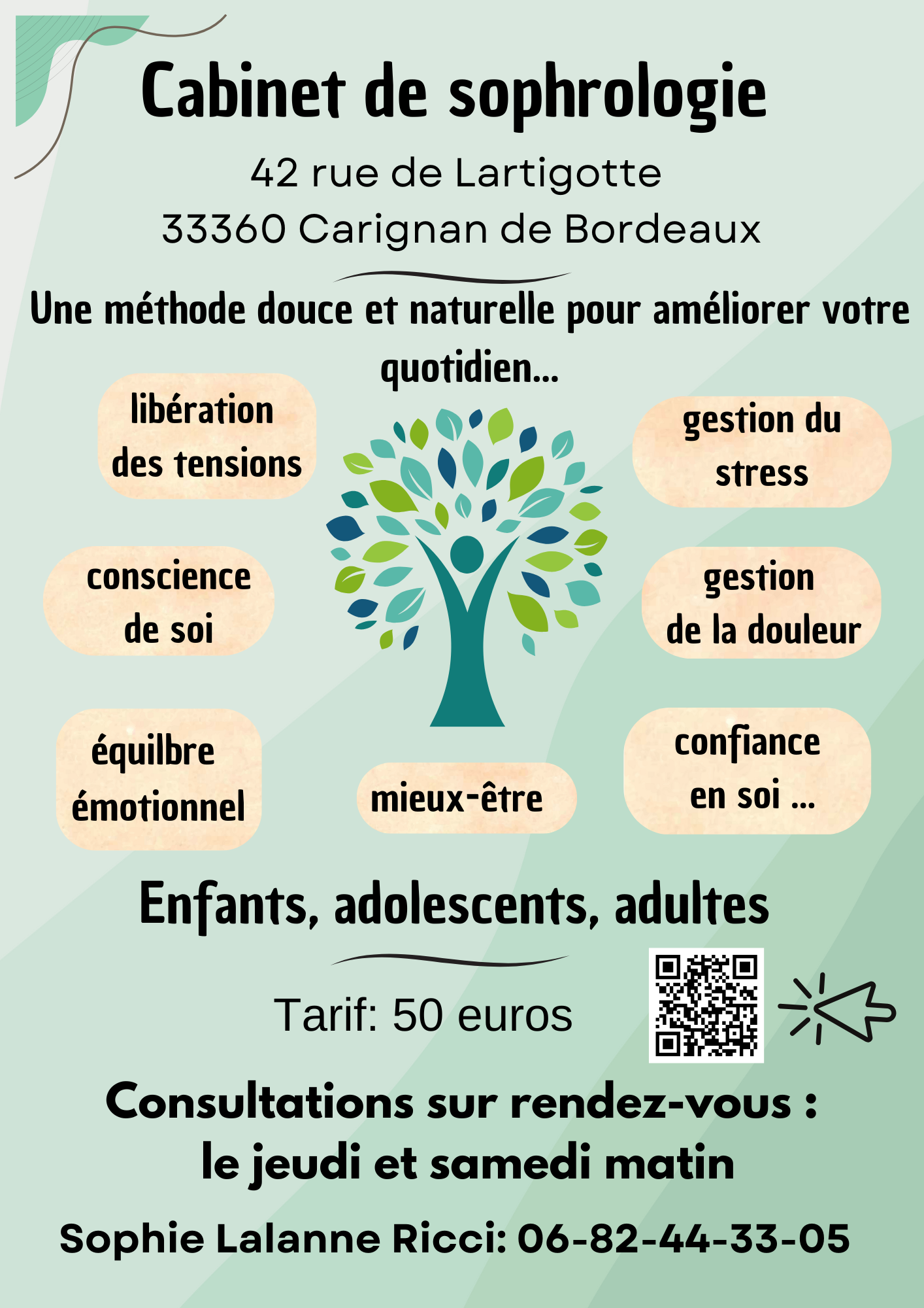 C’est avec joie que je vous annonce l’ouverture d’un nouveau cabinet de sophrologie en plein cœur de Carignan de Bordeaux.